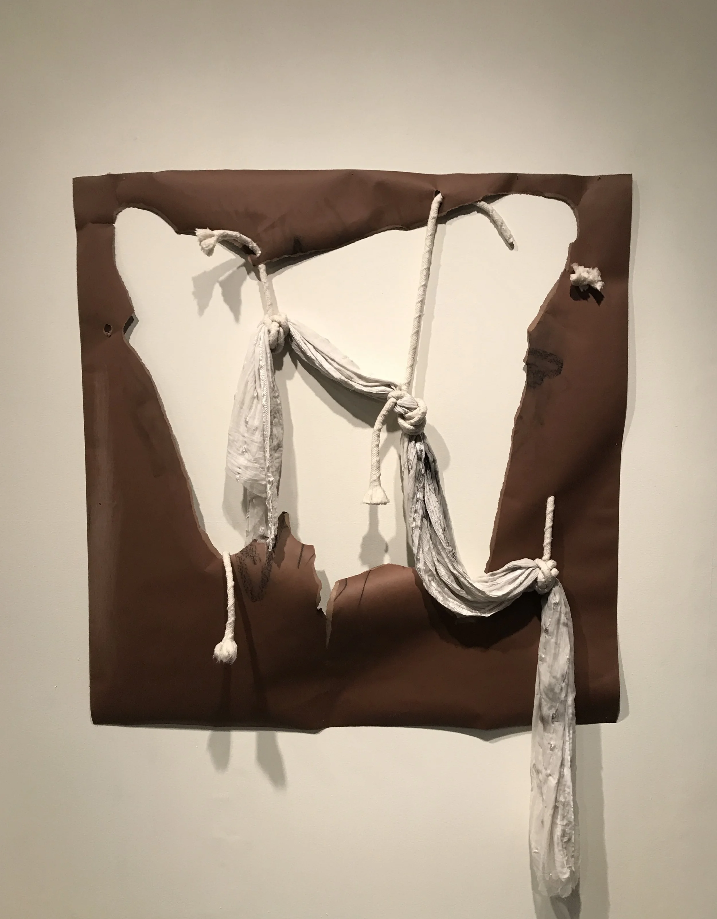 In the works on view in the exhibition, Kasem draws from the formal aspects of these historical and contemporary rituals to create physical manifestations of her own mourning. While she chooses her fabric and ties her knots carefully, the works are made quickly and intuitively. She tears, abrades, and stretches paper, cloth, and rope nearly to the point of breaking. The works express a sense of grief’s pain and sorrow, yet their surprising elegance suggests the act of mourning’s worth. In them the artist creates her own ritual-materializing her own voice, that is, like wailing, both poetic and bold."